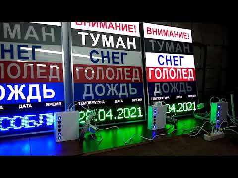 Световое табло для автопредприятия "ТУМАН, СНЕГ, ГОЛОЛЕД, ДОЖДЬ" 1000 х 700 мм, Ханты-Мансийский автономный округ-Югра, г. Нижневартовск | Световое табло для автопредприятия "ТУМАН, СНЕГ, ГОЛОЛЕД, ДОЖДЬ" 1000 х 700 мм, г. Иркутск | Пульт в проводом для светового табло "ВНИМАНИЕ! ТУМАН, СНЕГ, ГОЛОЛЕД, ДОЖДЬ" |