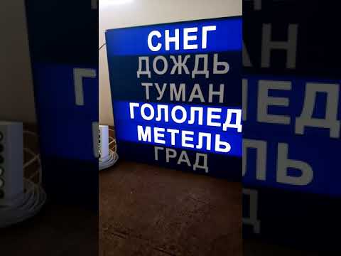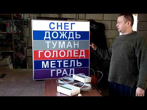 Это световое табло предназначено для отображения информации о текущих состояниях погодных условий. Управление осуществляется с помощью проводного пульта, на котором выведены кнопки вкл/выкл один из параметров погодных условий. Информация на табло подсвечивается поканально и соответствует одному из выбранных вариантов погодных условий. Готовое решение для использования как внутри помещений так и на открытых площадках.