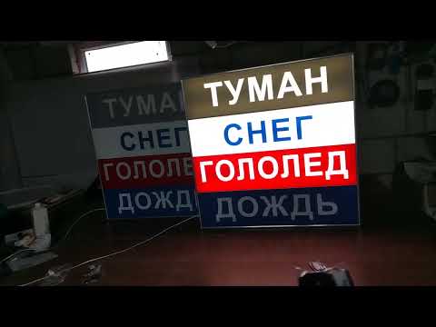 Табло изгоговлено из пвх в виде короба с раздельными нишами для подсветки каждой надписи. Лицевая часть изготовлена из светорассеивающего акрилового стекла (полистирола). Для подсветки используется светодиодная лента SMD5050.