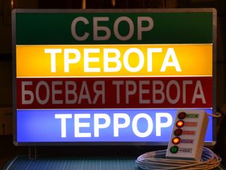 Световое табло "СБОР, ТРЕВОГА, БОЕВАЯ ТРЕВОГА", изготовлено для авиационного училища , г. Краснодар | Световое табло "ПОВЫШЕННАЯ, ВОЕННАЯ ОПАСНОСТЬ, ПОЛНАЯ, ТЕРРОР", изготовлено для военной академии , г. Санкт-Петербург | Световое табло "ОБЪЯВЛЕНА БОЕВАЯ ТРЕВОГА, ПОВЫШЕННАЯ, ВОЕННАЯ ОПАСНОСТЬ, ПОЛНАЯ", г. Москва |